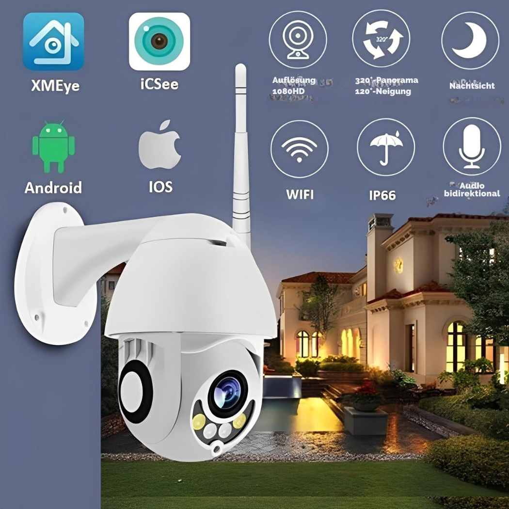 Die drahtlose WLAN-Überwachungskamera verfügt über einen horizontalen Drehbereich von 320° und einen vertikalen Drehbereich von 120°. Dadurch kann sie einen größeren Bereich abdecken als herkömmliche Kameras.